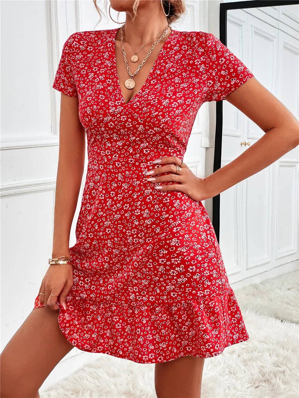 Women’s V-neck Floral Mini Dress with Puff Sleeves