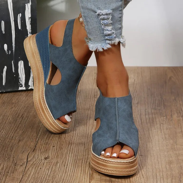 Designed for sunny days, these wedge sandals combine open cut-outs, a peep toe, and a secure ankle buckle for effortless summer wear. The cushioned sole and textured platform bring height and steady support, perfect for daytime outings, weekend getaways, or coastal walks.