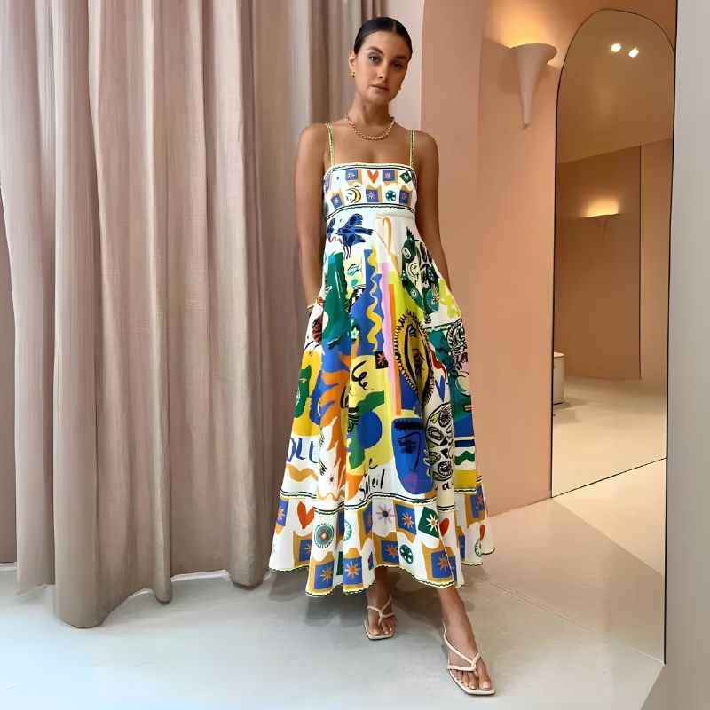 Women’s Square-Neck A-line Maxi Dress with Thin Straps