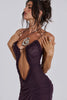 A striking maxi silhouette shaped with a deep curved cutout and slender straps that frame the upper line with dramatic intent. Gathered contours trace the waist before falling into a sheer, layered skirt trimmed with feathered fringe. A statement piece for warm-season evenings, late-night events, and destination moments where a bold entrance matters.