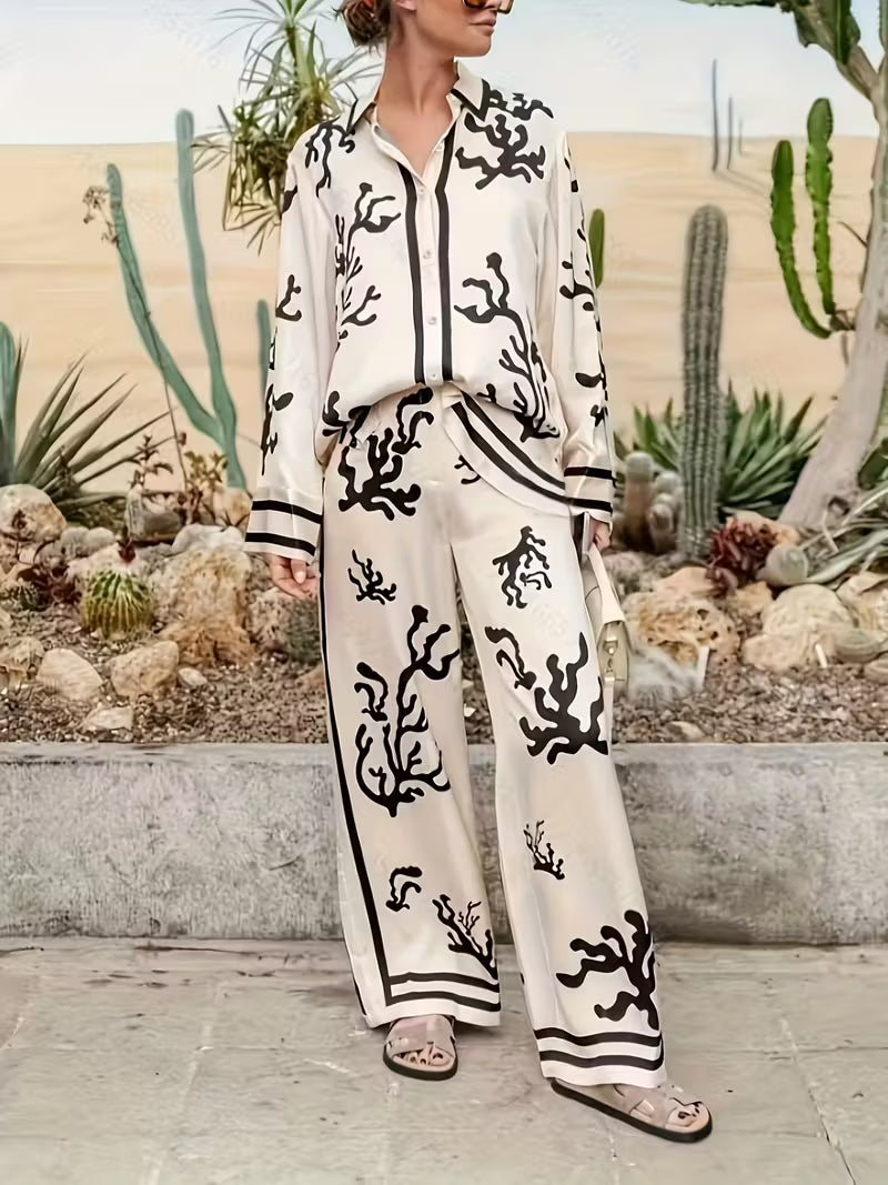 Women’s Printed Shirt and Wide-Leg Pants Set