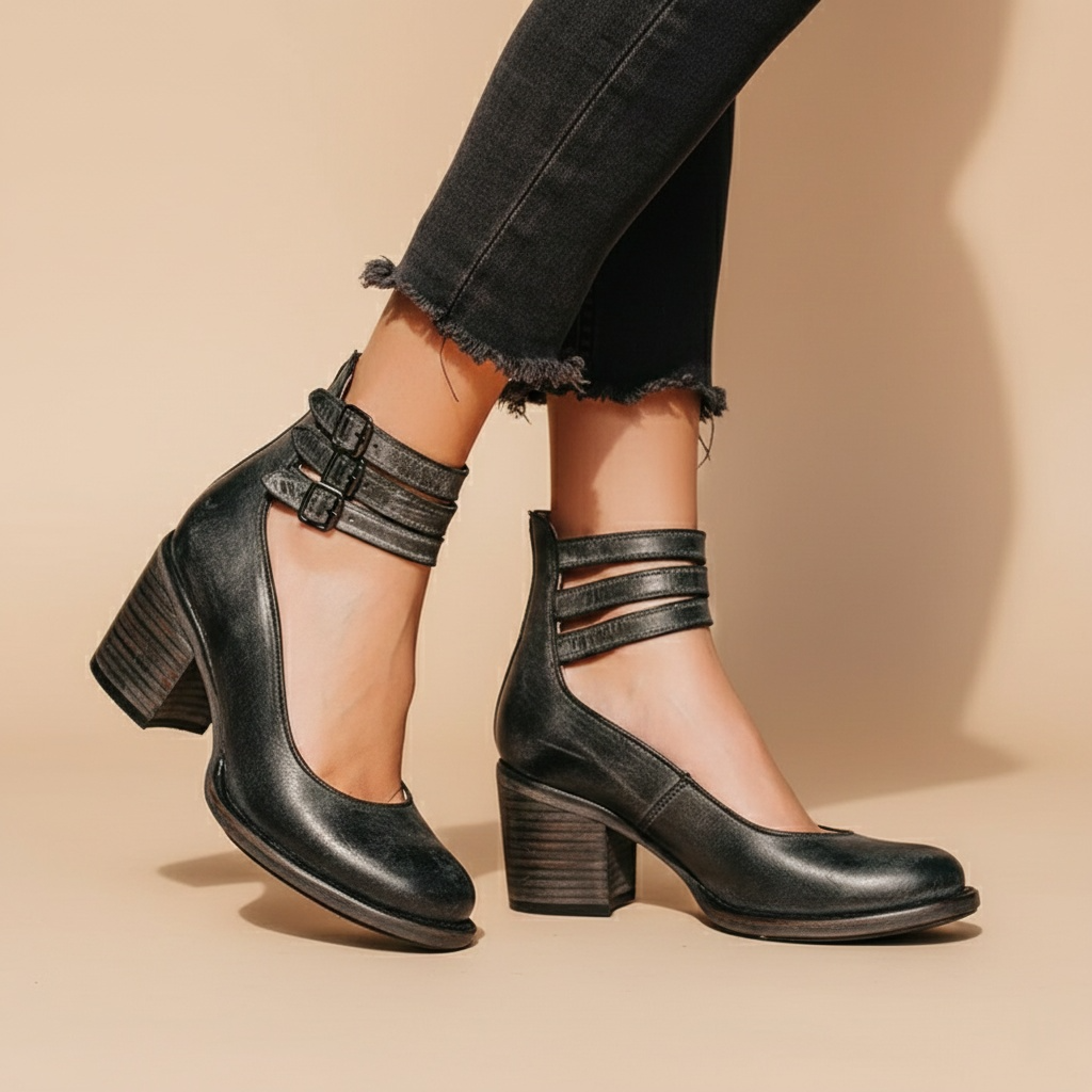 Women’s Closed Toe Block Heels with Double Ankle Straps